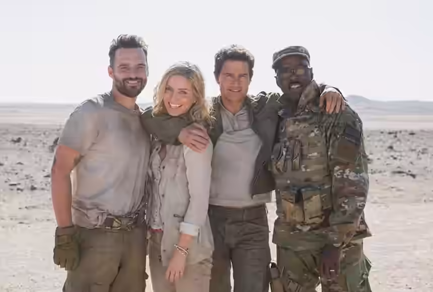 Ez az első olyan fotó, amin az összes főszereplő feltűnik – kivéve persze a Múmiát most, de róla már láttunk rengeteg képet. Annabelle Wallis a szivárogtatott képekhez hasonlóan itt szokás szerint Tom Cruise oldalán foglal helyet, Courtney B. Vance a kép jobb oldalán, míg Jake Johnson a bal oldalon látható. Ezek után tényleg csak Sofia Boutella hiányzik erről a fotóról. Ő fogja a haragos és morcos szörnyet, a Múmiát életre kelteni a rebootban.